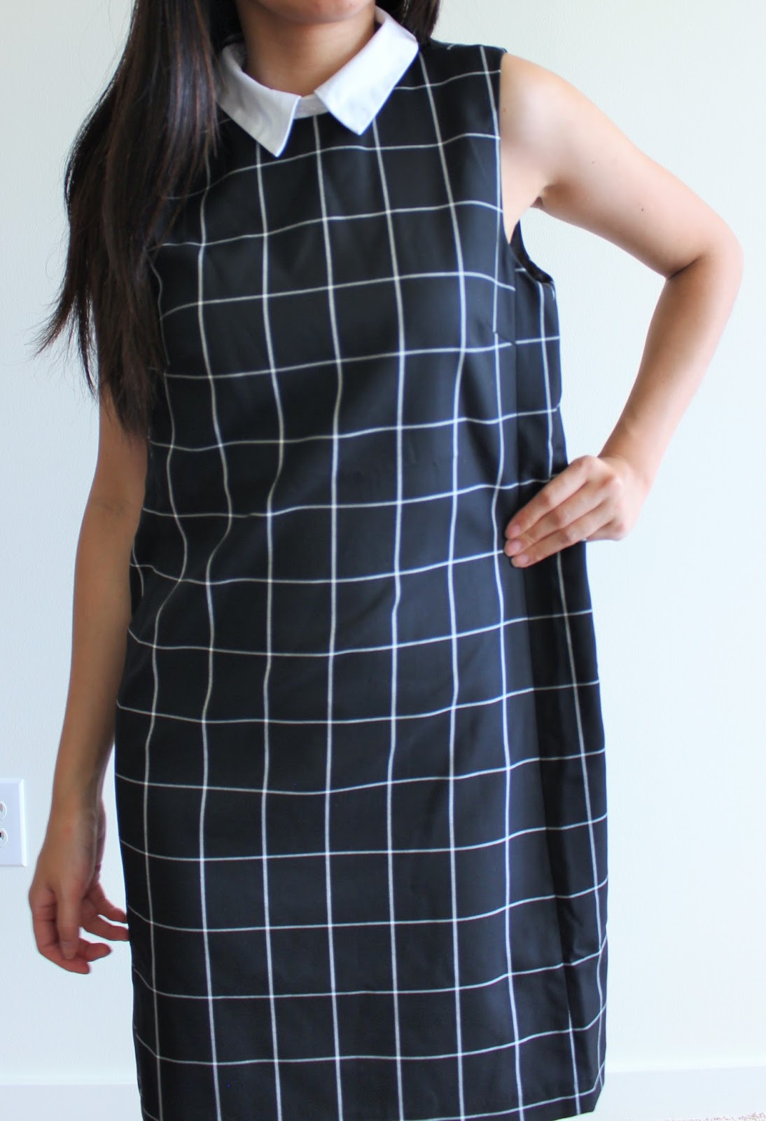 This shift dress was very cute and has a retro feel to it. I am also loving the grid print trend right now. The detachable color makes it versatile too. I ordered it in my size, XS - Petite but it seemed a bit loose on me. The chest darts were not hitting the right spots and the arm hole was very big. I exchanged it for a XXS - Petite and it was a lot better. You can tell it is more form fitting to my body. But the length of the XS would have been more work appropriate. I will probably wear tights with the XXS if I wear it to work.